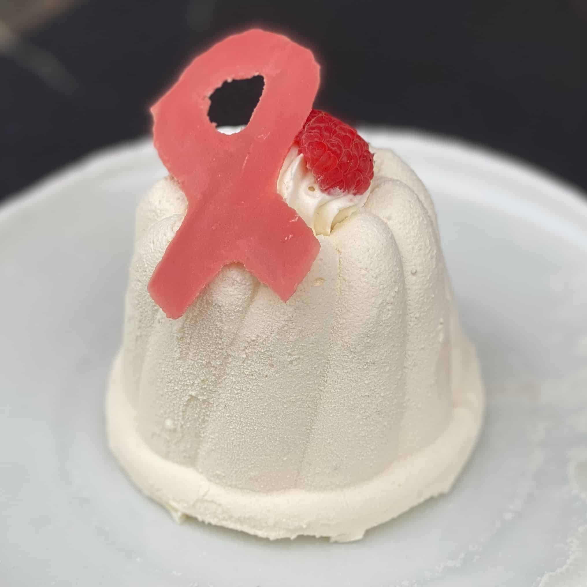 Biscuit japonais, namelaka et mousse vanille bio, cœur framboise eau de rose