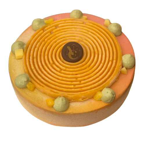 Biscuit japonais, crémeux thé vert Matcha, compotée mangue litchi, mousse légère mangue